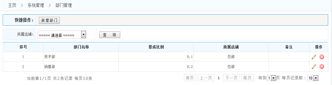 3.部門列表:在列表中的操作一欄 可以對該部門進行編輯或者是刪除