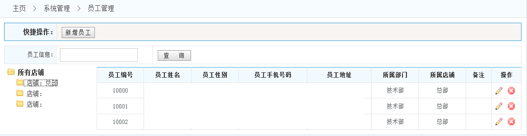 店鋪員工管理:查看店鋪員工的信息情況:查看店鋪員工的信息情況