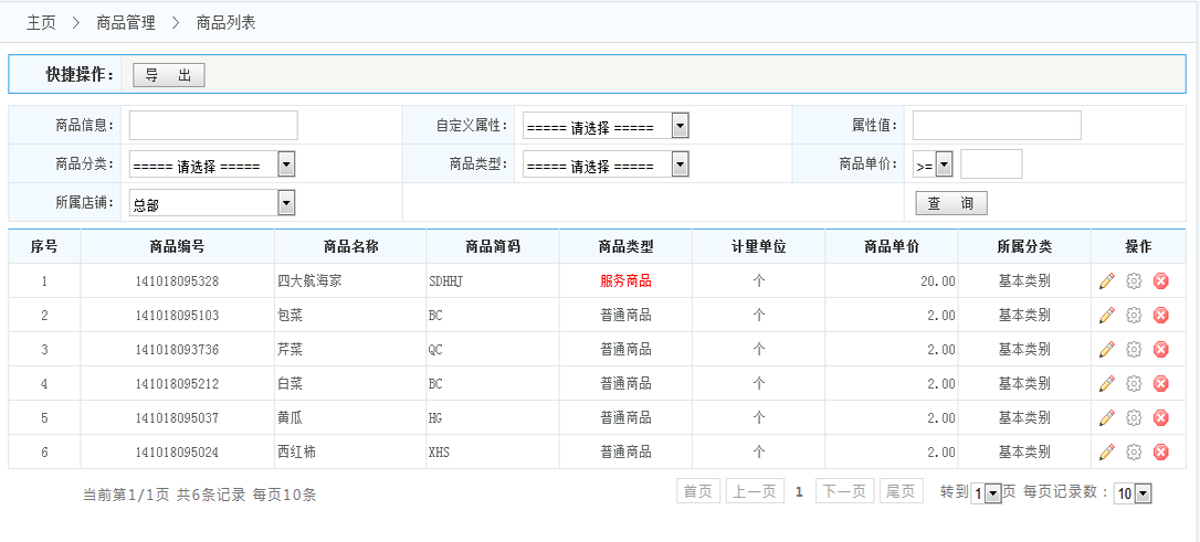 該界面用于查詢商品信息;